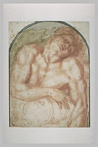 Homme nu, endormi, vu à mi corps, la tête inclinée vers la droite