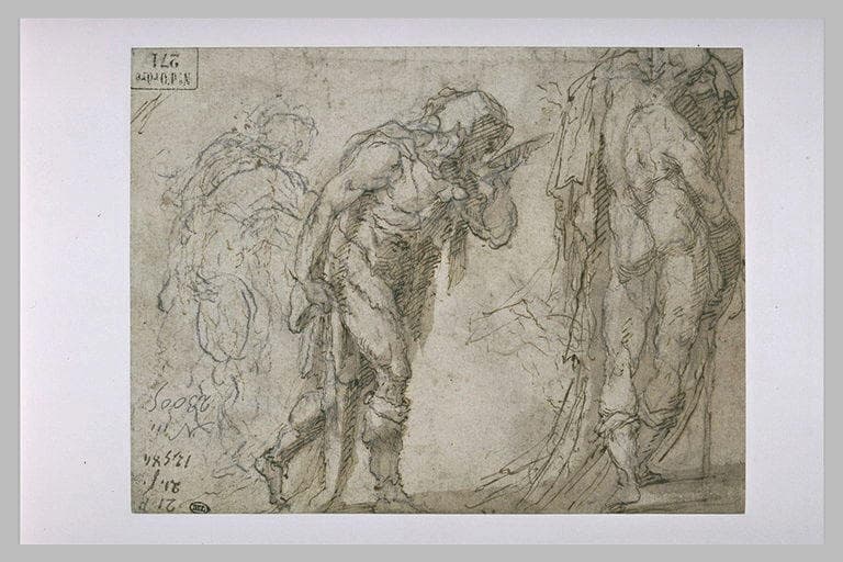 POP | Plateforme ouverte du patrimoineTrois hommes à demi-drapées, debout, de dos ou de profil vers la droite