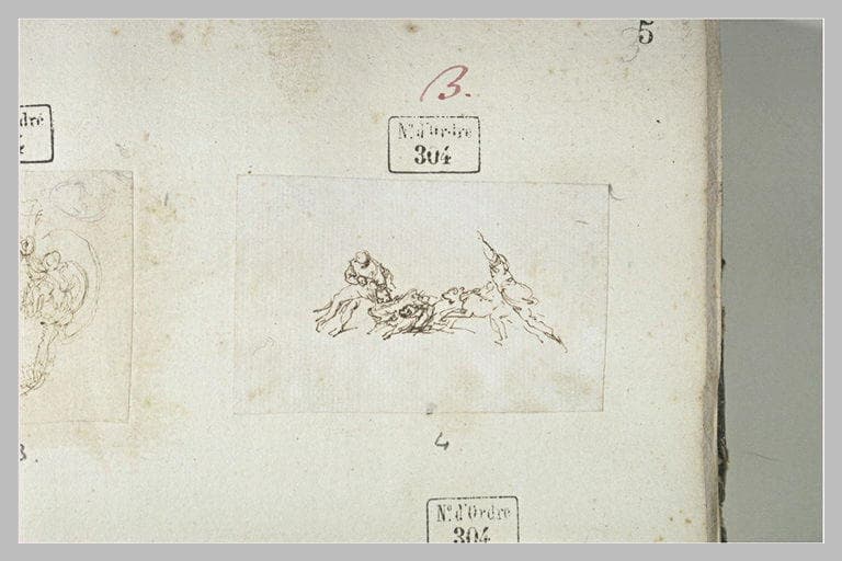 POP | Plateforme ouverte du patrimoineDeux piqueurs et quatre chiens attaquant un sanglier