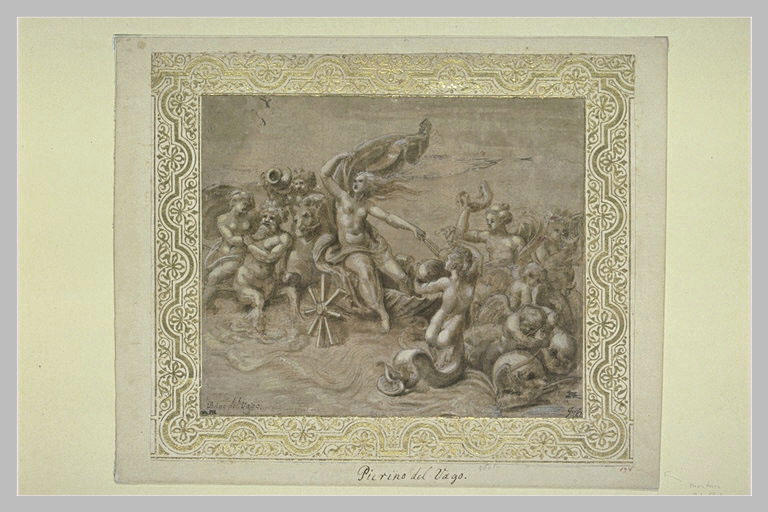 P.H. Lankrink (L.2090) - J.Talman (L.2462) ; son montage caractéristique avec annotation à la plume et encre brune : Pierino del Vago - J. Barnard (L.1419, L.1420), annotation à la plume et encre brune au verso : J.B. N° 46 / 9 by 7 3/4 - Bertheels, sa vente, 3 février 1789, n° 198 - Ch.-P.-J.-B. de Bourgevin Vialart de Saint-Morys - Saisie des biens des Emigrés en 1793, remise au Museum en 1796-1797 ; marque du Louvre (L.1886).
