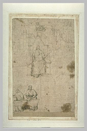 POP | Plateforme ouverte du patrimoineFigure trônant, et deux personnages assis, l'un tapant sur une enclume