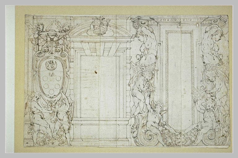 Projet de décoration murale avec putti, armes des Medici et guirlandes