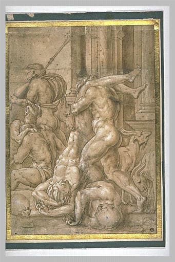 POP | Plateforme ouverte du patrimoineHommes combattant parmi des animaux et un joueur de cornemuse