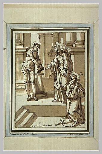 Le Christ à la colonne, la Vierge Marie et saint François à genoux