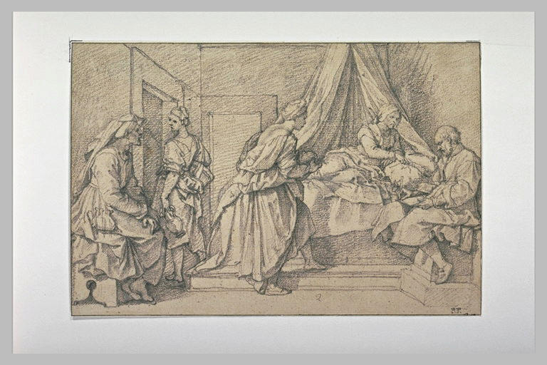 Déjà répertorié par Morel d'Arleux (I, n° 448) comme oeuvre présumée de Federico Zuccari, ce dessin, qui est une copie d'après La Naissance de saint Jean-Baptiste d'Andrea del Sarto au cloître du Scalzo à Florence, a été définitivement restitué à l'artiste par D. Heikamp ['Federico Zuccari a Firenze 1575-1579, II, Federico a sua casa, in Paragone, 207 (27), 1967, p. 30 note n° 8 ; cf. S. J. Freedberg, Andrea del Sarto, Cambridge, Mass., 1963, II, p. 15 note n° 28]