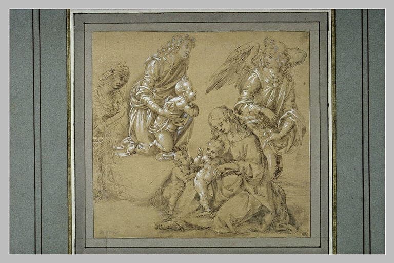 Vierge à l'Enfant avec le petit saint Jean ; un ange ; et autres figures