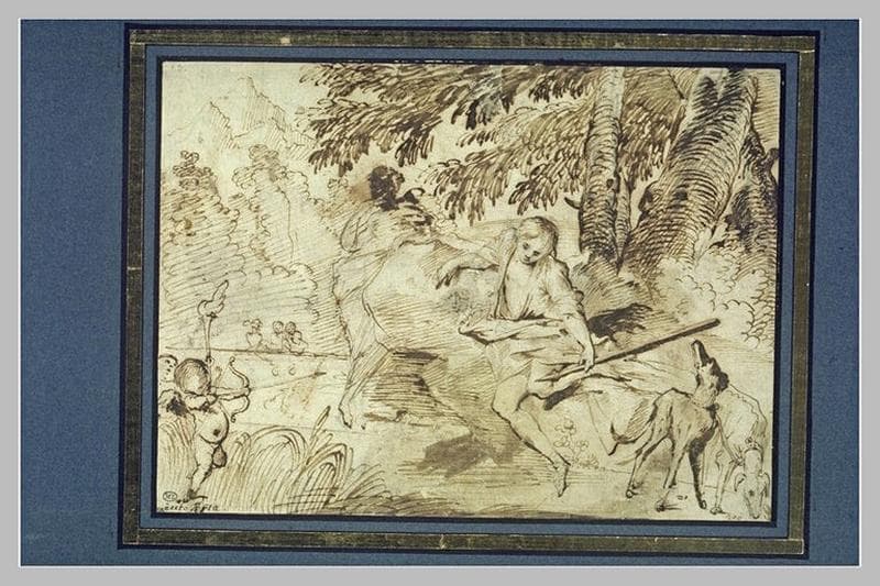 Identifié comme une Vénus et Adonis par A. Marabottini ['Il trattato di pittura e i disegni del Lucchesino, in Commentari, V (1954), 3 (juillet - septembre), pl. LXVI, fig. 8] et comme une Mort d'Adonis par A. Sutherland Harris ['Notes on the Chronology and Death of Pietro Testa, in Paragone, XVIII (1967), 213/33 (novembre), p. 52 note 28].