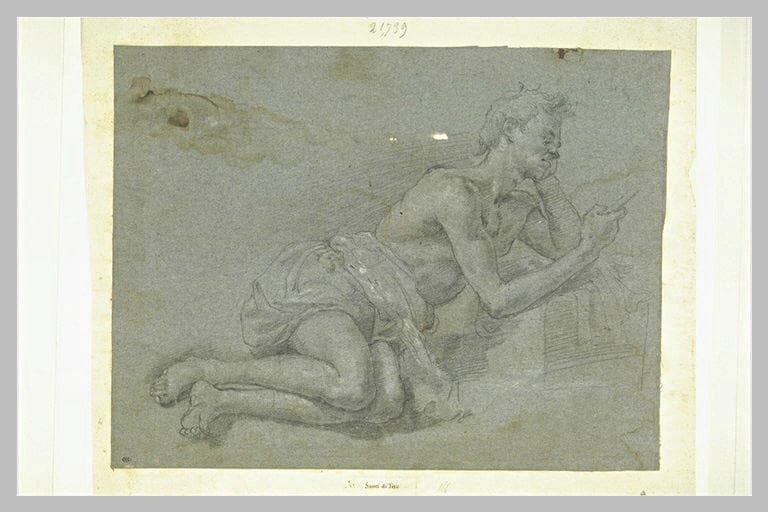 Homme à demi-allongé, de profil, contemplant un objet