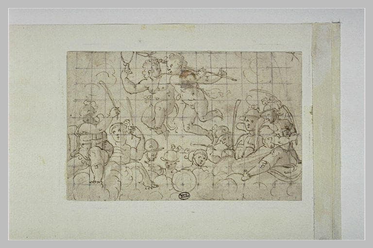 Choeur d'anges dont deux élevant le Calice et la Lance