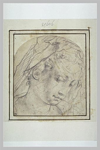Tête de femme, de trois quarts vers la droite, le regard baissé