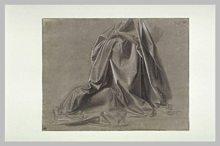 Cette étude de draperie fait partie des esquisses sur toile de lin, seize au total, qui ont été exécutées pendant les années 1470, période d'apprentissage de l'artiste dans l'atelier de Verrocchio à Florence. Elle est souvent comprise comme une recherche pour le manteau de l'ange de L'Annonciation des Offices de Florence ou, plus justement, pour celui de l'ange de gauche, dans le Baptême du Christ également aux Offices