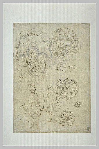 Etant donnée la forme des armes (qui ne comportent pas les aigles impériaux), le dessin est très probablement antérieur à l'élévation de Gianfrancesco Gonzaga au titre de marquis par l'empereur, en 1433 (D. Cordellier, cat. exp. Pisanello, le peintre aux sept vertus, Paris, Musée du Louvre, 1996, n° 68)