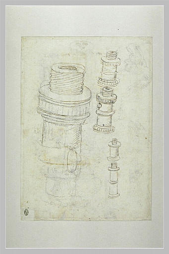 Esquisse de bombarde, préparatoire à la pièce de gauche du dessin INV 2294 (Rocchi, Fossi Todorow ; D. Cordellier, cat. exp. Pisanello, le peintre aux sept vertus, Paris, Musée du Louvre, 1996, n° 293)