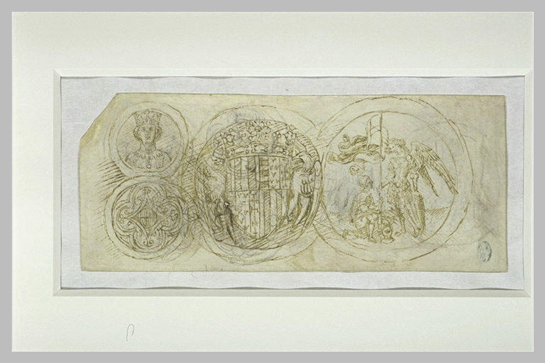 Peut-être un projet de relief sculpté (Van de Put, 1917, 1932) (D. Cordellier, Cat. exp. Pisanello, Le peintre aux sept vertus, Paris, Musée du Louvre, 1996, n° 296)