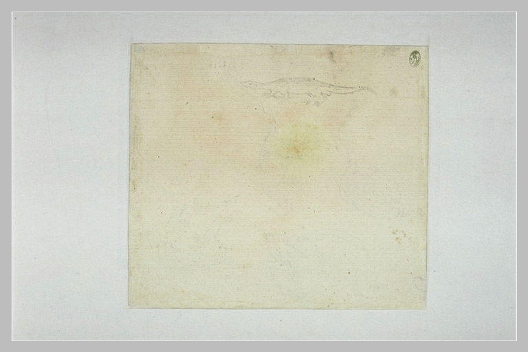 Feuille du groupe des dessins sur papier filigrané avec un cerf cabré et irrégulièrement lavé de sanguine, voir groupe n°XI
