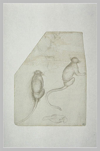 POP | Plateforme ouverte du patrimoineDeux singes, vus de dos, deux autres singe et partie d'un crâne de jument