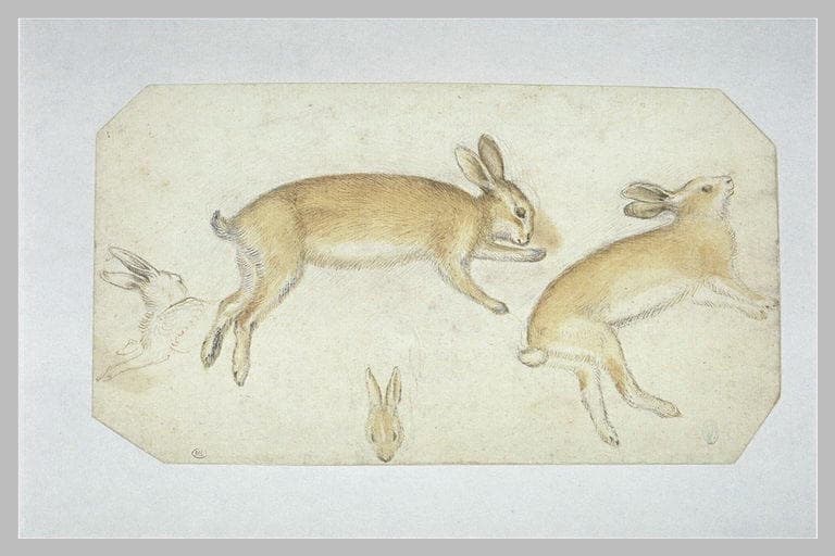 Deux études d'un lapin mort, couché sur le flanc ; esquisse de deux autres