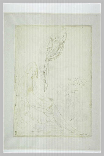 Pointe de métal (plomb ?), repassé à la plume et encre brune (sauf l'Enfant). Parchemin