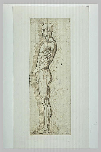 Etude anatomique d'un homme debout, de profil vers la gauche