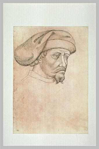 Tête d'homme barbu, de trois-quarts vers la droite, coiffé d'un mazzocchio