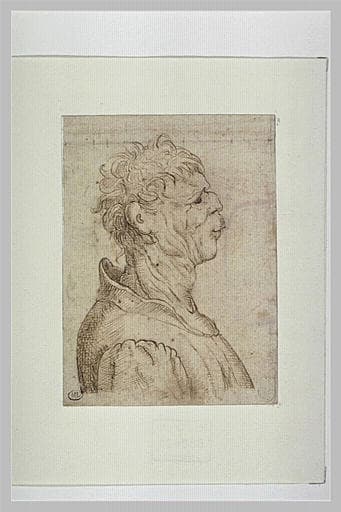 Buste d'homme de profil à droite, les cheveux ébouriffés
