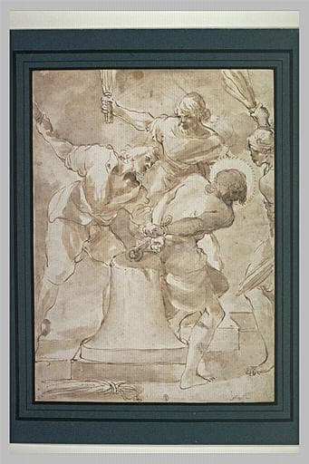 Monsignore Paolo Coccapani ; collection des ducs d'Este ; saisie à Modène en 1796, remise au Museum en 1797, provenance attestée par l'inventaire manuscrit de L.-M.-J. Morel d'Arleux ; autrefois monté avec le dessin Inv. 7766, les deux dessins étant inventoriés par L.-M.-J. Morel d'Arleux sous le même n° 5202 : Ecole des Carraches ; marque du musée (L. 1955).