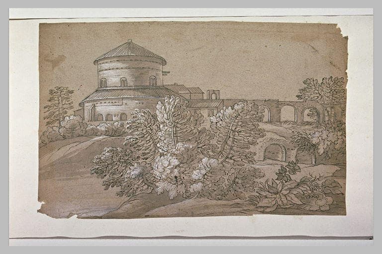 POP | Plateforme ouverte du patrimoineAqueduc conduisant à un bâtiment circulaire, dans un paysage
