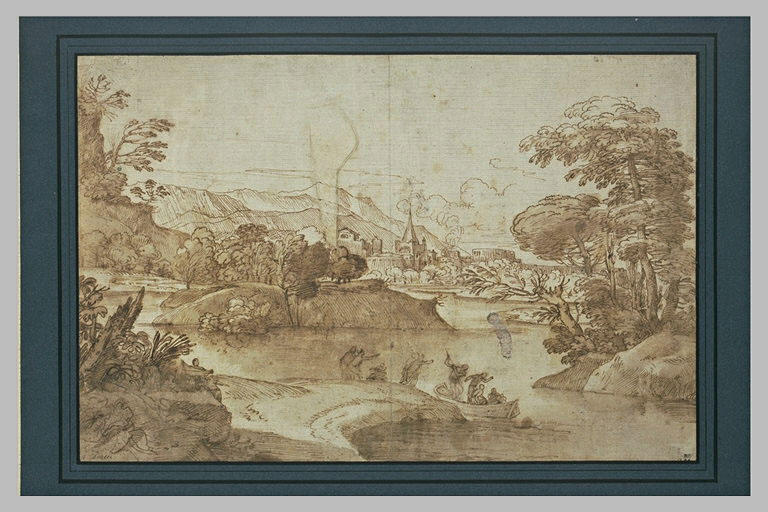 POP | Plateforme ouverte du patrimoineFigures dans un paysage avec une rivière et une cité fortifiée au loin