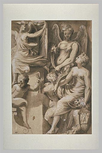 Allégorie avec une Renommée et deux femmes tenant une corne d'abondance