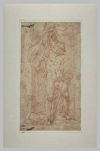 POP | Plateforme ouverte du patrimoineHomme nu, debout, tenant une draperie au dessus de la tête dans une niche
