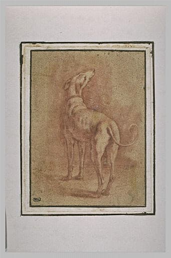POP | Plateforme ouverte du patrimoineUn chien debout levant la tête, vu de dos