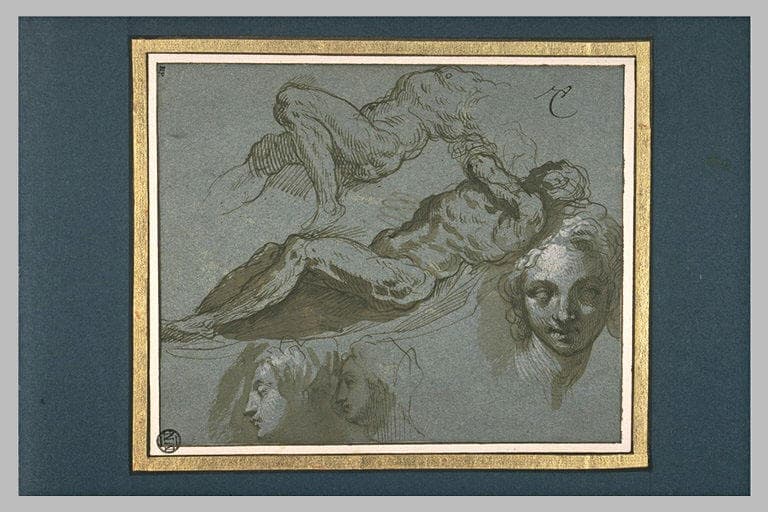 POP | Plateforme ouverte du patrimoineEtudes de deux hommes nus couchés de profil, et de trois têtes de femme