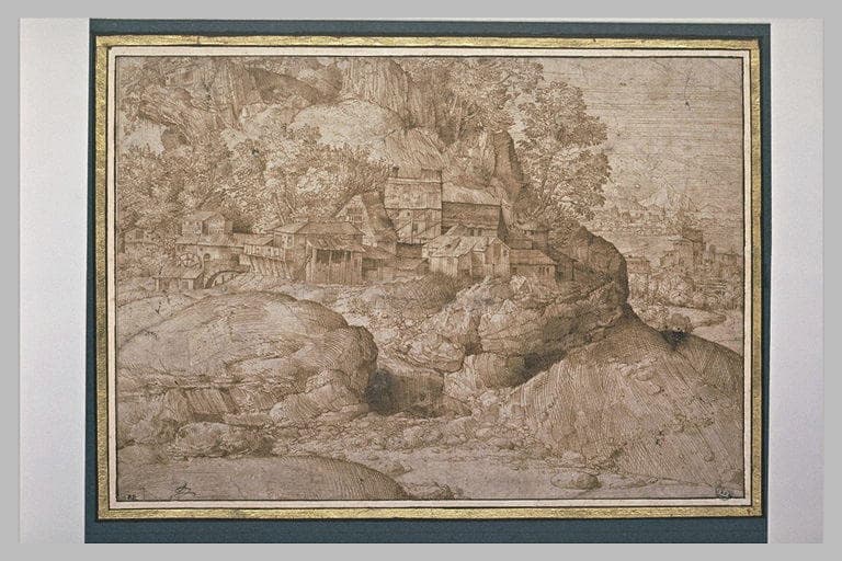 Paysage avec rochers et fabriques