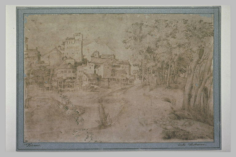 POP | Plateforme ouverte du patrimoineVille au bord d'une rivière, avec la lisière d'un bois sur la droite
