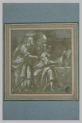 POP | Plateforme ouverte du patrimoineSaint Pierre debout et saint Matthieu assis devant une table