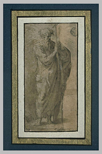 E. Jabach (L. 2959) ; montage à bande dorée des dessins d'ordonnance ; Inventaire Jabach, III, n° 401 (Parmesan) - Entré dans le Cabinet du Roi en 1671 ; paraphe des dessins remontés (L. 2961).