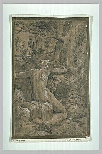 POP | Plateforme ouverte du patrimoineUn homme nu, assis dans une forêt au pied d'un arbre, de dos