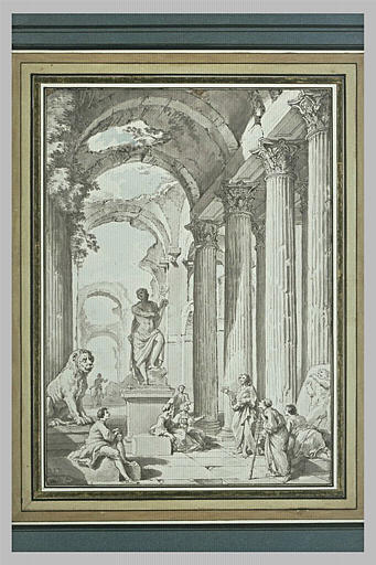 POP | Plateforme ouverte du patrimoineUn apôtre préchant à côté d'une statue d'Apollon jouant de la lyre