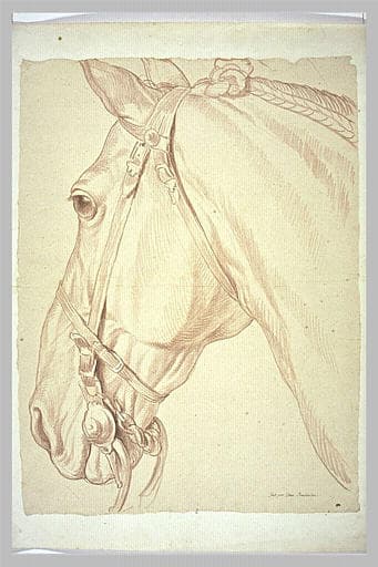 Tête de cheval, bridée, tournée vers la gauche