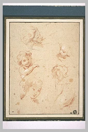Etudes d'une tête de femme, quatre têtes d'enfants et d'un corps d'enfant