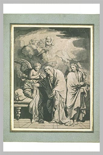 La Vierge fermant les yeux d'un moine, avec saint Jean l'Evangéliste