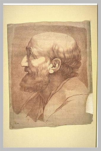 Tête de vieillard chauve et barbu, de profil vers la gauche