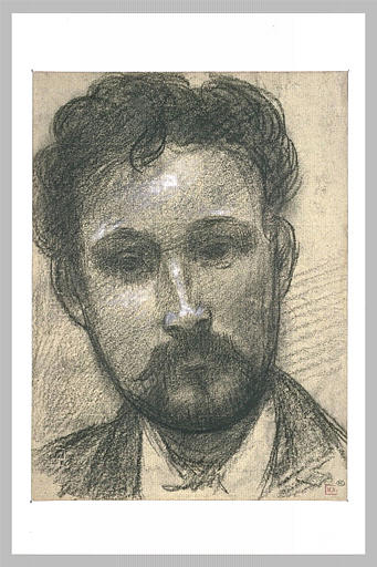 Etude préparatoire d'un portrait d'Emile-Alfred Dezaunay pour un projet de tableau présentant Puvis de Chavannes dans son atelier, entouré de ses élèves : Paul Baudoüin, Emile-Alfred Dezaunay, Marie-Auguste Flameng, Cornelis Ary Renan, Adolf Karol Sandoz, Daras, Clémansin du Maine et Montenard. Le tableau est connu par une esquisse ayant appartenu à Baudoüin (actuellement non localisée), elle est reproduite dans les Souvenirs de Baudoüin (Souvernirs sur Puvis de Chavannes, Gazette des Beaux-Arts, 6e période, XIII, mai 1935, p. 305, fig. 5). A noter que la princesse Cantacuzène figure parmi eux sur certaines études conservées par les héritiers de l'artiste. A rapprocher des études RF 2327 à RF 2330 et RF 5136. (L.-A. Prat, Musée du Louvre, Cabinet des dessins - Inventaire Général des dessins français, Lettre P, Paris, 1997, R.M.N., n° 2183, p. 608)