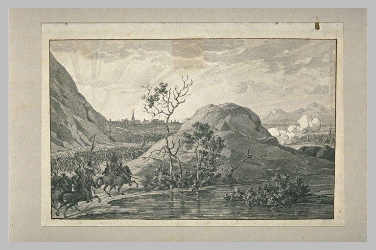 Fait partie d'une série de dessins exécutés entre 1802 et 1814 pour l'illustration des Campagnes de Napoléon Ier en Italie, sous la direction du Baron Vivant-Denon, Directeur depuis 1802 du Museum Central des Arts