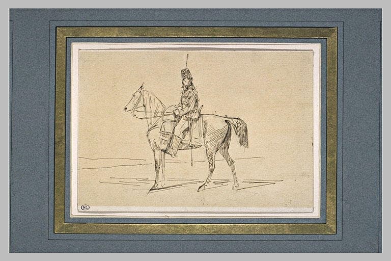 Chasseur à cheval, de profil à gauche