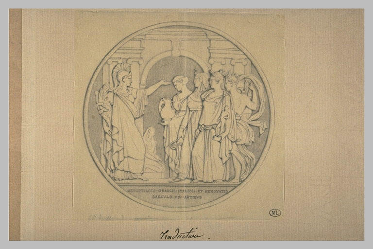Dessin de la médaille dédiée aux Arts à l'occasion de l'inauguration du Musée Charles X.