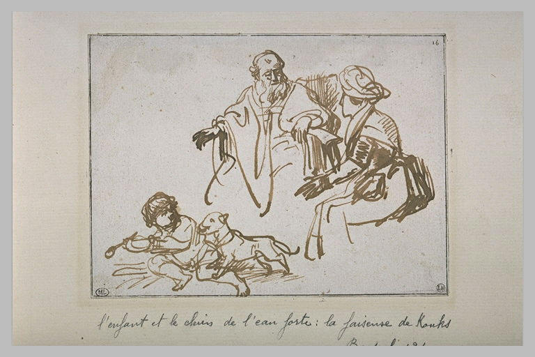 Filigrane n° 27 : écusson couronné, motif peu distinct et accompagné en bas des initiales M. M. En haut à droite, le n° 16 de l'album Bonnat. Hofstede de Groot n° 732. Benesch I, 112, fig. 123. Cet épisode se réfère à I, Rois 17, v. 10-15.