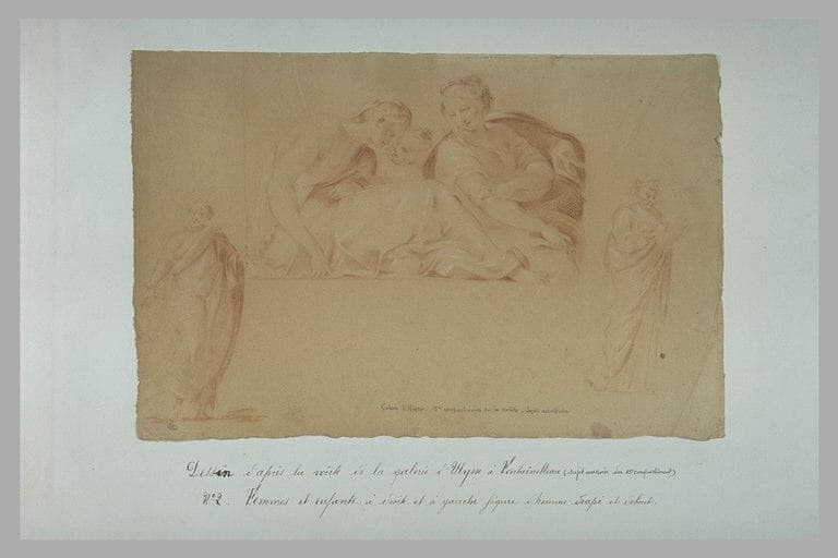 Femmes et enfants ; deux figures d'homme drapés et debouts