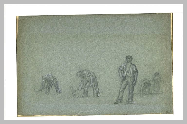 Etudes de paysans, d'hommes avec une pioche, d'une femme et d'un enfant