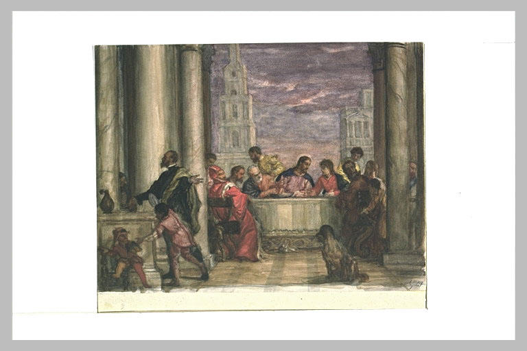 Copie d'après la partie centrale du Repas chez Levi, tableau de Véronèse conservé à Venise (Gallerie dell'Accademia).
